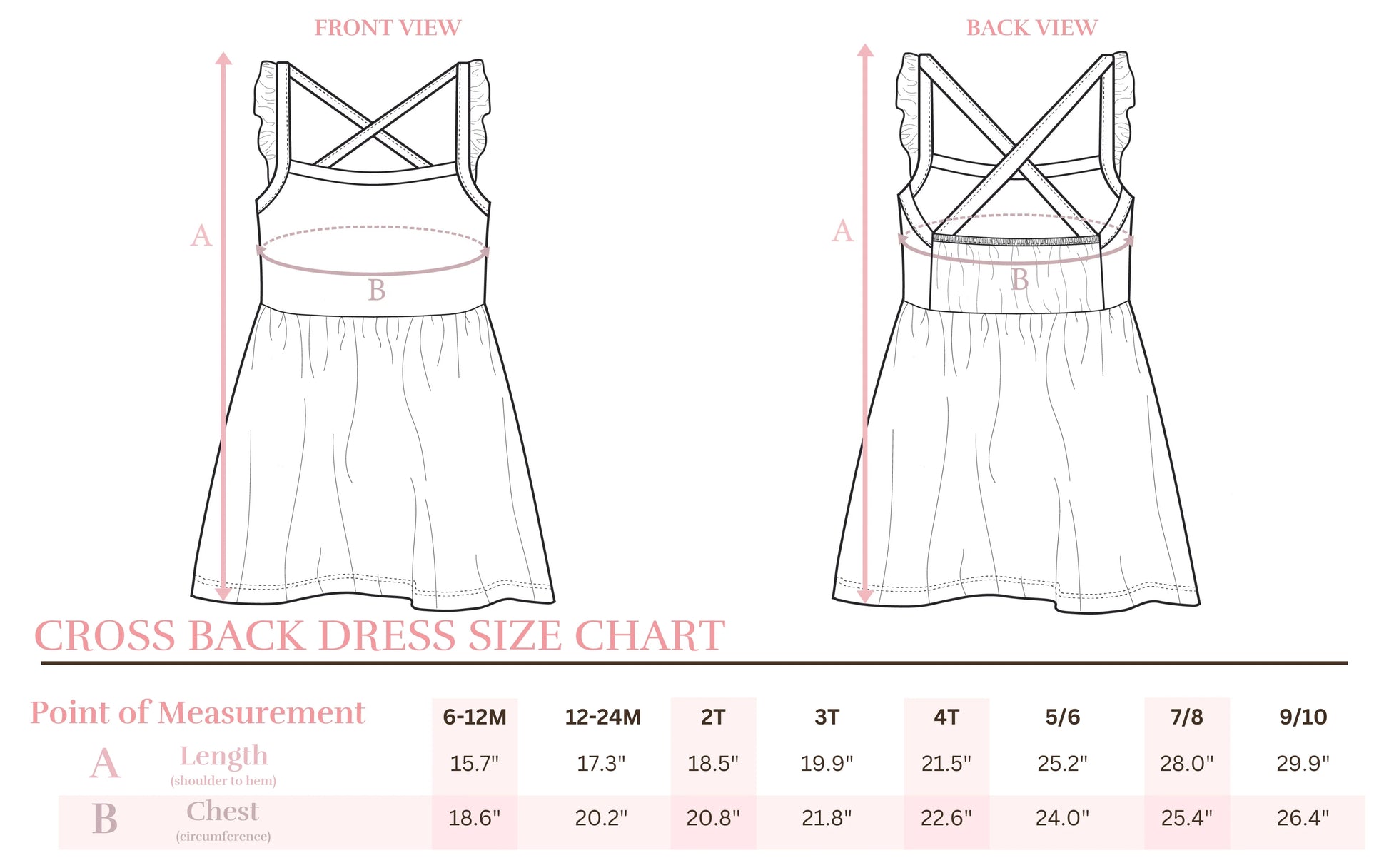 Our Ruffle Cross Back Dress is perfect for summer! Straps criss cross in the back and are finished off with a sweet ruffle on the shoulder. Super soft fabric stays bright wash after wash.
