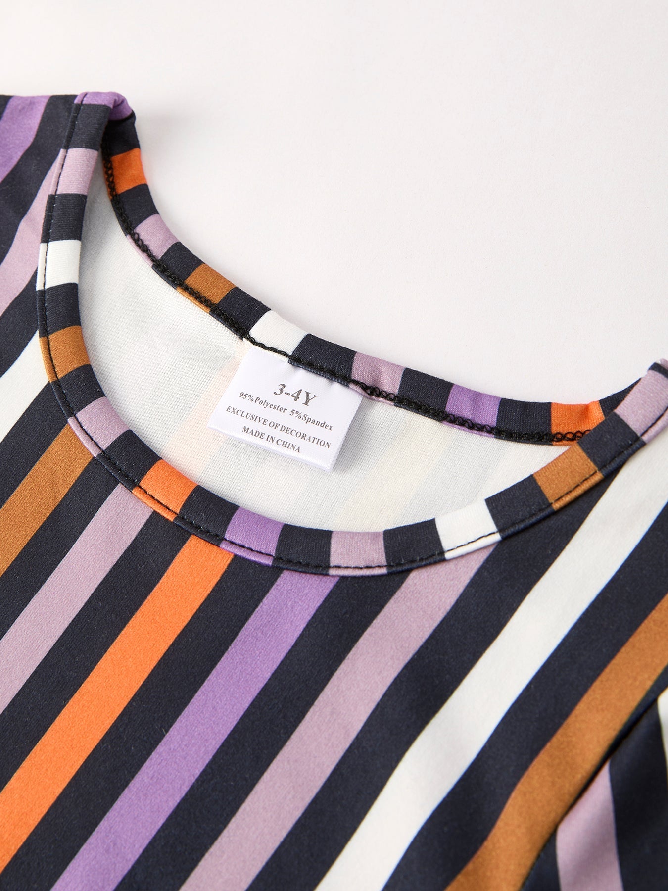 This charming two-piece Halloween spooky striped dress set for girls combines festive fun with comfortable fashion. Featuring two dresses for girls, playful ghost graphics and classic stripes make this the perfect outfit for your little one's spooky party. Soft, breathable fabric ensures all-day comfort, while coordinating accessories make dressing up easy and cute.